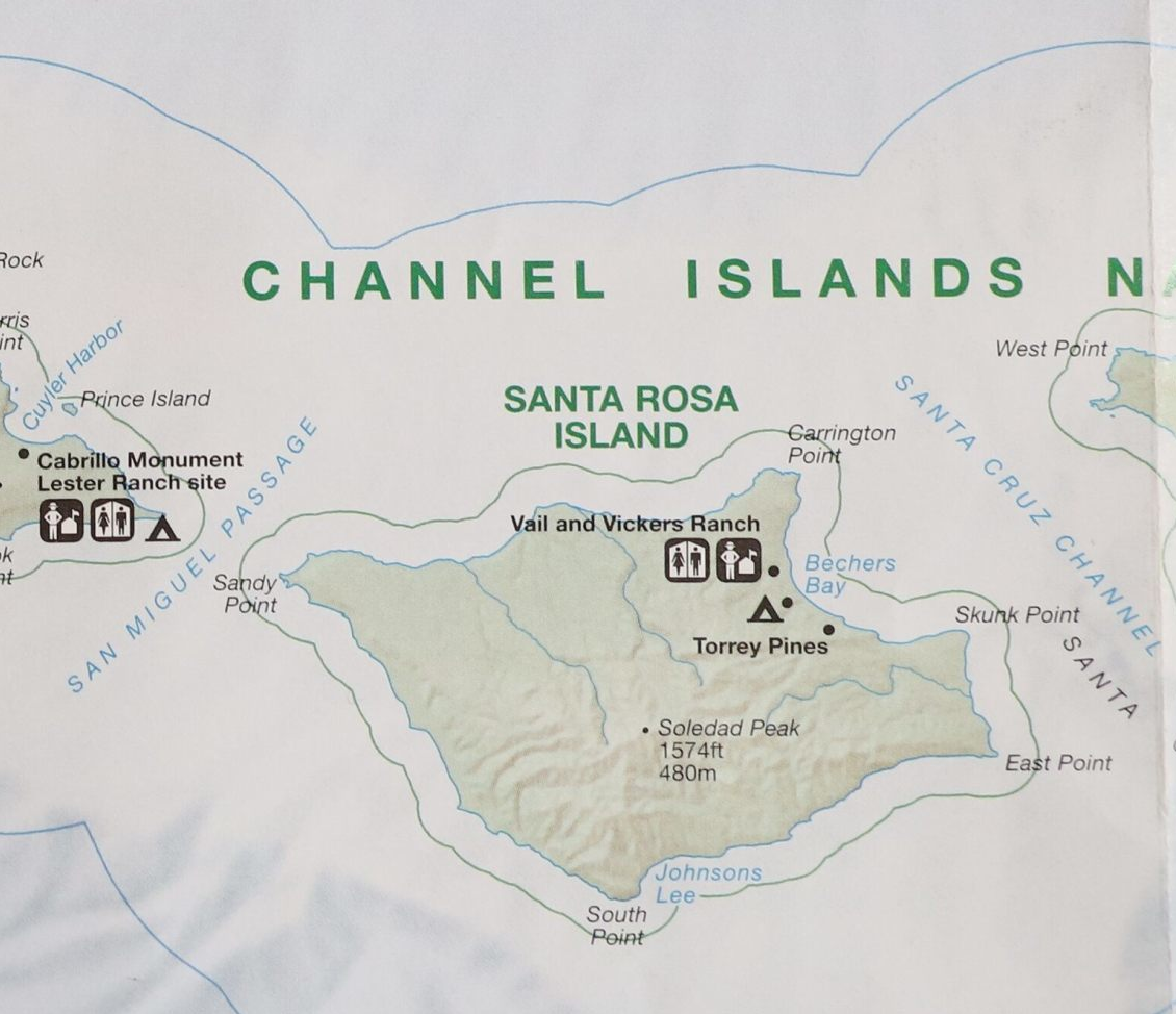 – ist die zweitgrösste Insel des Channel Island National Parks mit einer Ausdehnung von 16km Breite und 23km Länge. Es locken tiefe Canyons, sanft geschwungene Hügel, Lagunen und unberührte Strände dekoriert mit weissen Sand Dünen und grauem Driftwood (verwittertem Treibholz). Durch die herrschende Strömung wird gerade hier Unmengen an Treibholz an die Küste gespült. Die Chumash Indianer (Native Americans) nannten es Wima und nutzten die Baumstämme und Planken für den Bau von Kanues. Für viele Tausend Jahre war SANTA ROSA Heimat für sehr seltene Tiere und Pflanzen. Während die Riesen Maus, das Zwerg Mammut, oder die Laufgans längst ausgestorben sind, kann man noch den Insel Fuchs oder das gestreifte Stinktier sichten. Eine Art der Succulenten, die munchkin dudleya, ist eine von 6 Pflanzenarten, die noch und ausschliesslich auf SANTA ROSA wächst.